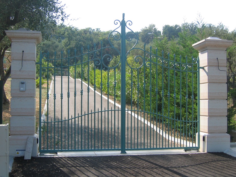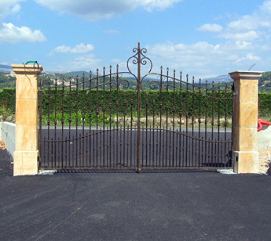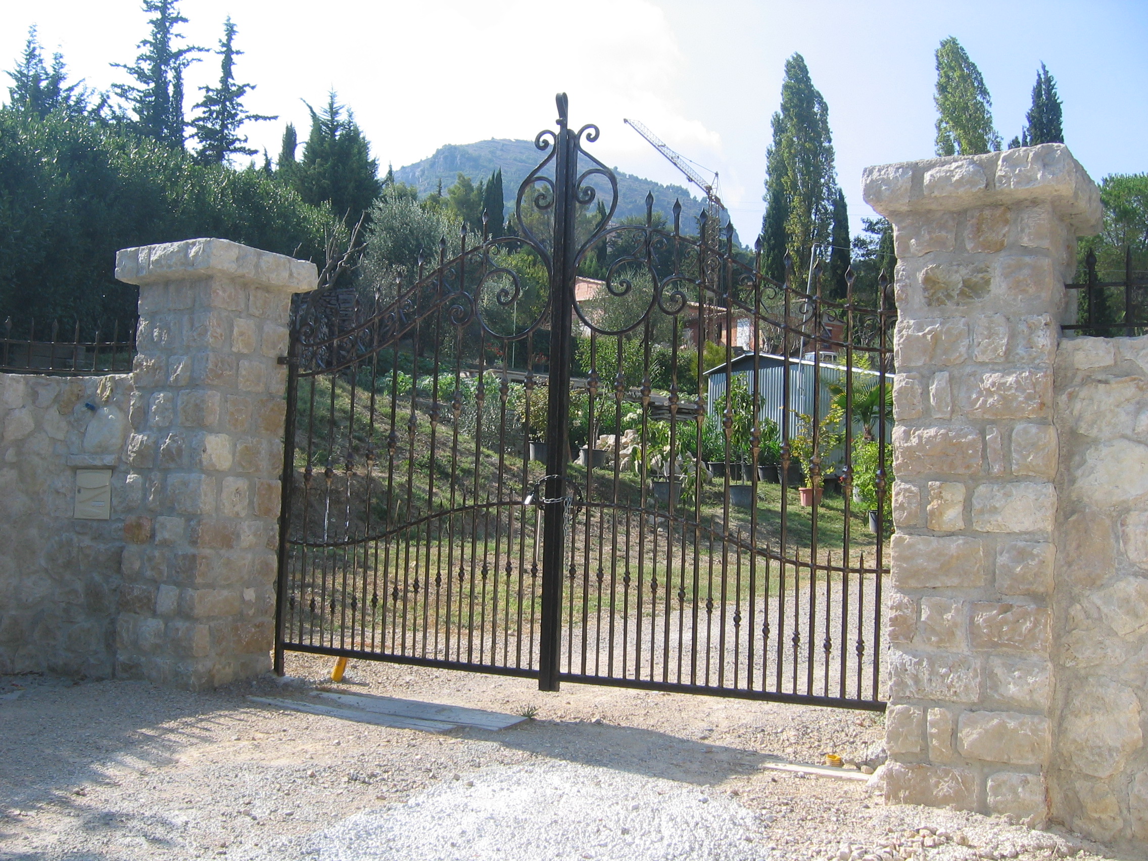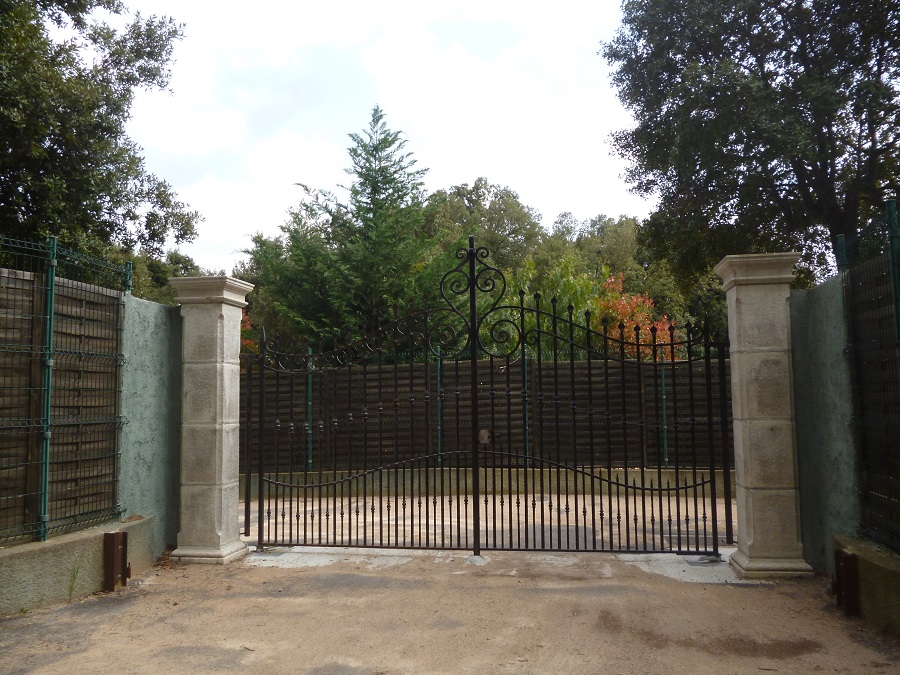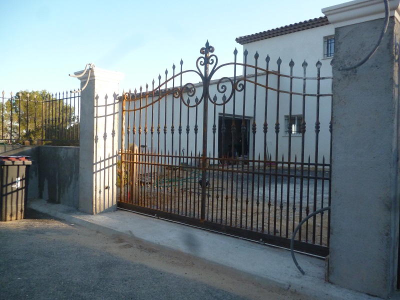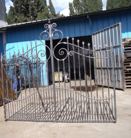 Barreaux en fers pleins carrés de 20 Montants en fers pleins carrés de 40 Traverses en trous renflez fers carrés de 20 Barreaux intermédiaires en fers pleins carrés de 14