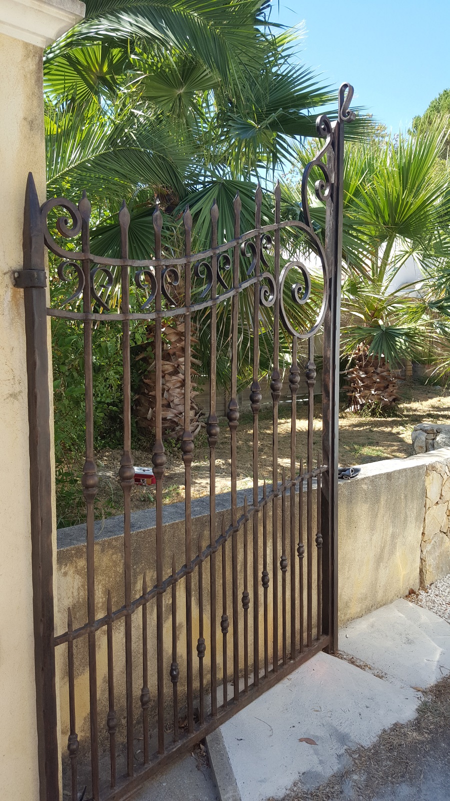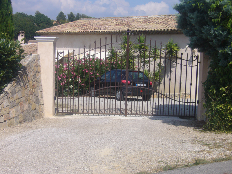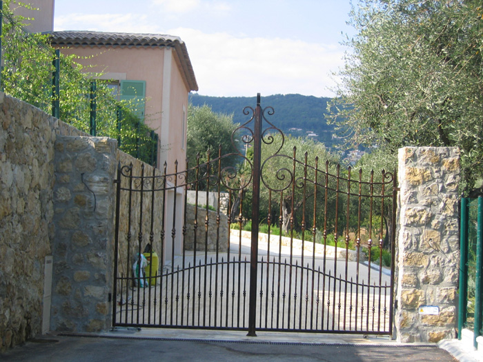 Barreaux en fers pleins carrés de 20 Montants en fers pleins carrés de 40 Traverses en trous renflez fers carrés de 20 Barreaux intermédiaires en fers pleins carrés de 14